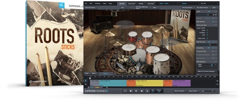 TOONTRACK HOLIDAY SALES Until December 31, 2025Yhteinen nimittäjä on ennemminkin tietty aikakausi. Siitä nimi Roots. Tässä joitakin faktoja kirjaston äänityspaikkana toimineesta Blackbird Studiosta: yli 1400 mikrofonin valikoima, 35 kanavaa Pultec-EQ:ta, 24 kanavaa Fairchild-kompressiota sekä satoja erillisiä mic/pre-kanavia (Telefunken, Neve, API, RCA, Chandler). Rumpali Roy "Futureman" Wooten on jokaista iskua lyödessään pitänyt mielessä musiikillisen kokonaisuuden, johon yksittäiset samplet kuuluvat. Juuri tämä on ratkaiseva tekijä, kun halutaan luoda tietokoneella täysin ”soitetun” kuuloinen rumpuraita!
