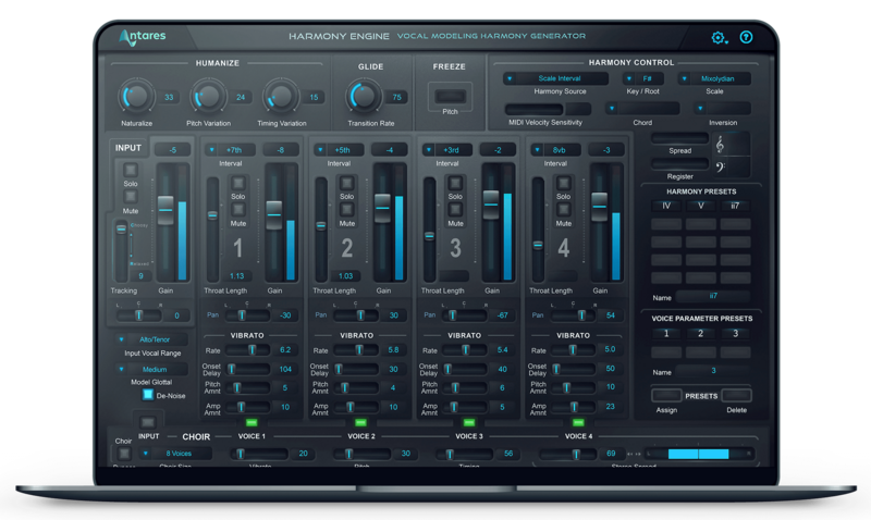 ANTARES Early Bird/Black Friday/End of Year Sale! 50% Off until January 2, 2026Harmony Engine is a real-time harmony generating plug-in that lets you produce professional quality harmony arrangements from a single vocal or monophonic instrument track. Whether you’re an experienced arranger, a songwriter looking for the perfect backup vocal, or a producer experimenting with unique effects, Harmony Engine gives you new ways to create the harmony parts you hear in your head. It offers a variety of control modes, from fully automatic to individual control of every note. Harmony Engine features four high-quality harmony voices with independently adjustable vocal character, vibrato, and pan settings for realistic or extreme effects. And five channels of our Choir vocal multiplier lets you turn each harmony voice into 2, 4, 8, or 16 individual unison voices.