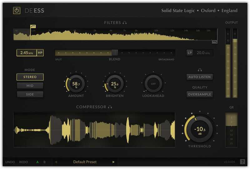 Tuotenumero 1078533SSL DeEss is a workflow-oriented correctional tool for precision sibilance reduction and high-frequency control – used to reduce excess sibilance and harsh mid-high frequency build-ups such as the 'ess' and 'shh' sounds in vocal takes.
