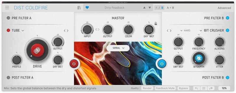 Routing balance slider to blend Distortions A & B, with real-time visualizer