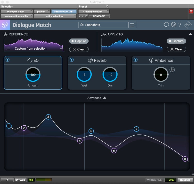 Perinteisesti eri ympäristöissä nauhoitettujen tai eri mikrofoneilla tallennettujen ääniraitojen tunnelman sovittaminen yhteen on vaatinut tuntikausia EQ:n säätämistä ja raitojen siivoamista.