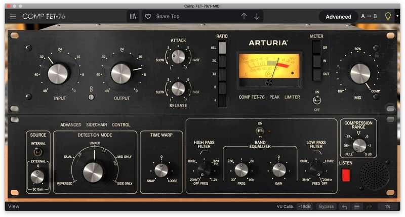 - Compression range parameter to limit the amount of gain reduction applied, with 0dB position for FET-76 with no compression/distorsion only sound