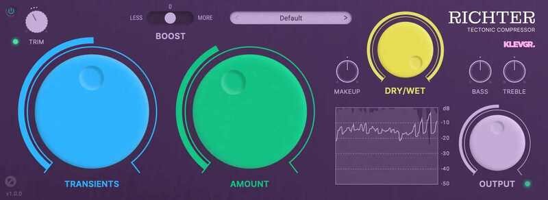 Richter is a tectonic compressor, designed to achieve heavy compression with a minimal amount of artifacts. It is the result of many years of experimenting in the Klevgrand labs. Normally a heavily compressed audio signal gets distorted, often with a nasty "zipper noise" artifact because of how the internal envelope followers are engineered. The experiments led to a brand new approach resulting in a compressor that empowers you to squeeze every bit of sonic perfection out of your tracks. Use it for meaty mixes, punchy drums or smooth, transparent vocal tracks.