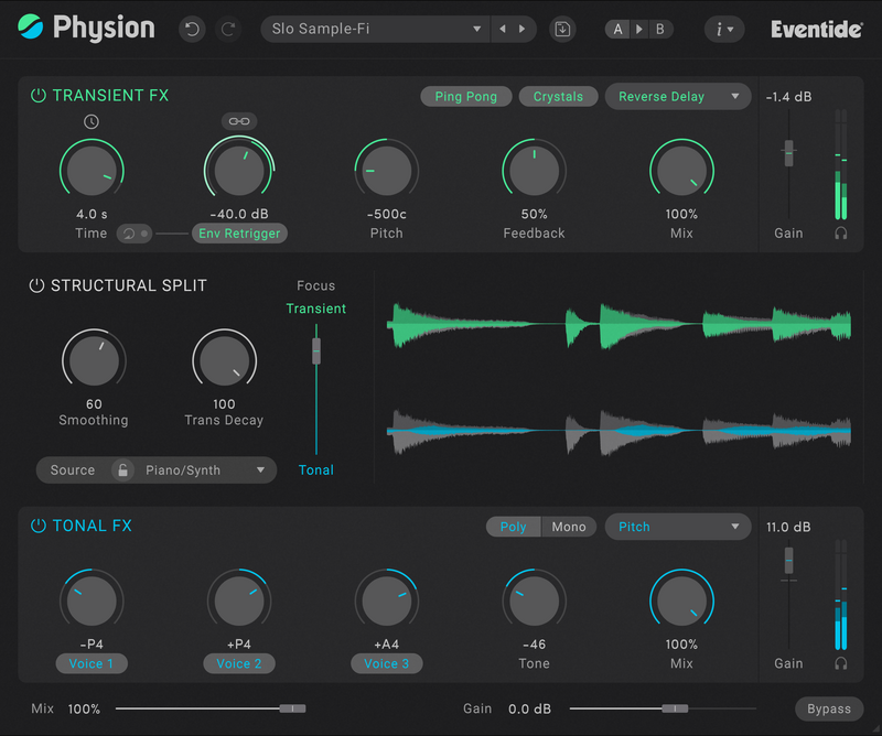 - Process Transient and Tonal Effects separately using Eventide’s Improved Structural Split™ technology