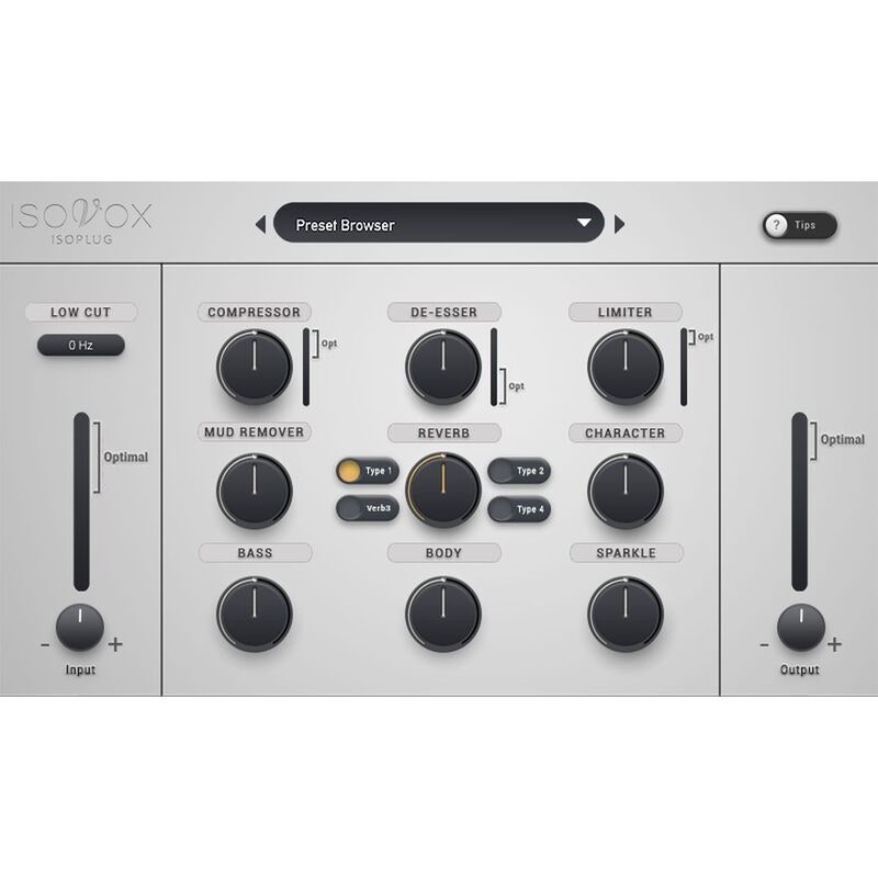 ISOPLUG keskittyy ääneesi ja sisältää työkalut, joiden avulla voit käsitellä äänityksesi täydelliseksi. Työkaluja ovat muun muassa EQ, Mud Remover, Kompressori, De-Esser, Character, Limiter ja Kaiku. Kaikki yhdessä näkymässä, joka tarjoaa helpon pääsyn. Kätevät ilmaisimet auttavat säätämään Kompressorin, De-esserin ja Limiterin äänenvoimakkuuden maksimoimiseksi.