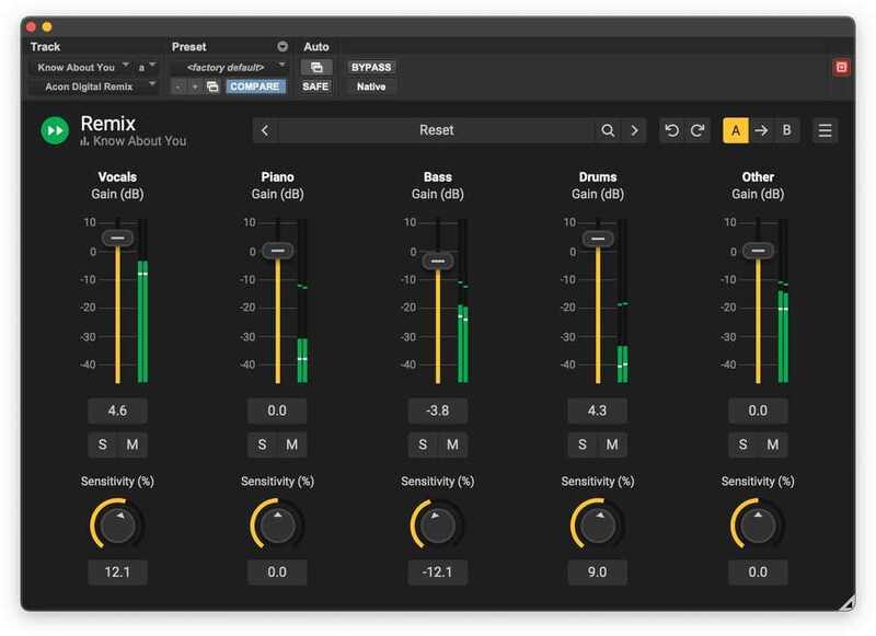 - Separate mixes into five stems – Vocals, Piano, Bass, Drums and Other
