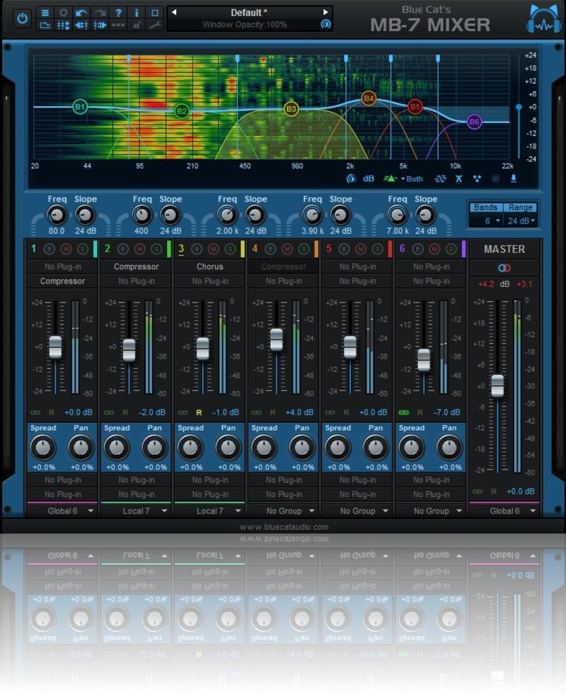 - Multiband mixing console: adjust the levels, panning and "stereoness" of each band separately.
