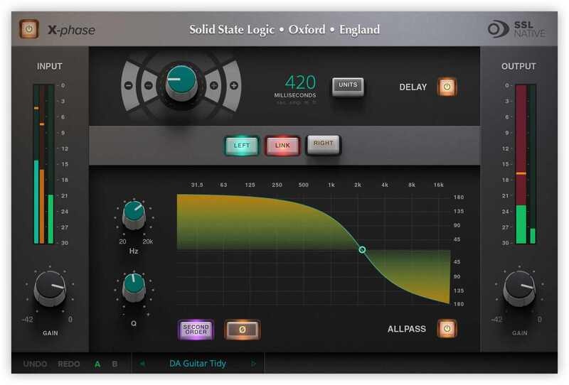 X-Phase is an All-pass Filter plug-in that offers the user manual control and high quality response. It enables the user to apply a phase shift (sometimes called a phase offset) at a specified frequency within a signal. Unlike other filter types where the gain of selected frequencies is altered, with an All-pass Filter the gain remains unchanged throughout the signal. This is useful for fixing phase problems with microphones when recording: e.g. overheads causing phase problems when mixed with close mic's.