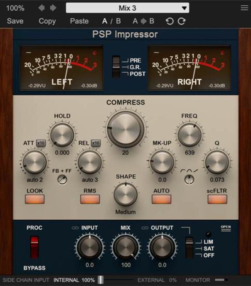 PSP AUDIOWARE BlackFriday Until December 5The PSP Impressor is a fully-featured, high precision compressor designed to process either whole mixes, busses or single tracks. PSP Impressor emulates the classic characteristics of compressors with valve and opto-electronic circuits as well as classic modern compression solutions. PSP Impressor also offers a highly configurable side-chain feature. The side-chain filter has a significant effect on PSP Impressor’s sound and operation. The filter also enables the user to operate the compressor as a de-esser or to lessen the pumping effects of heavy kick drums and the like, based on the side-chain settings.