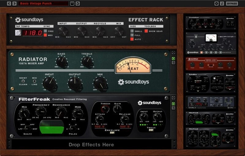 - Tämä kokoelma pitää sisällään 14 suosituinta Soundtoys efektiä, kuten EchoBoy, PrimalTap, Decapitator, Radiator ja FilterFreak