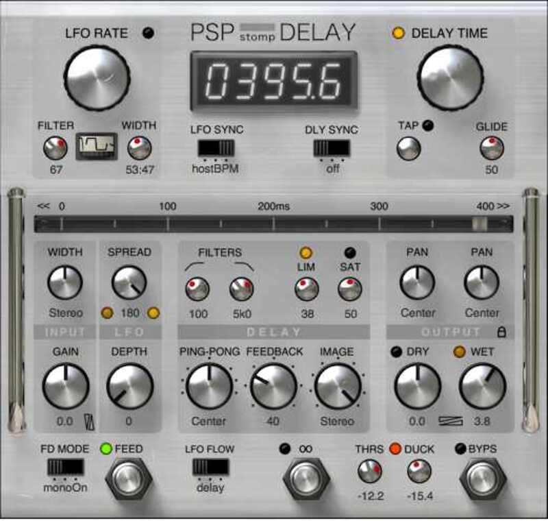 PSP AUDIOWARE BlackFriday Until December 5PSP stompDelay is a creative delay plug-in designed to provide a wide range of sounds from lush analog tape delays through vibrant loops, to classic ping-pong delays and scratchy pitch shifts. It features both traditional delay effects as well as a looper when in “infinite operation mode” (Infinity mode). PSP stompDelay offers continuous tap tempo, as well as accurate tape simulation, including simulating the volume drop that occurs when fast forwarding or cueing the tape.