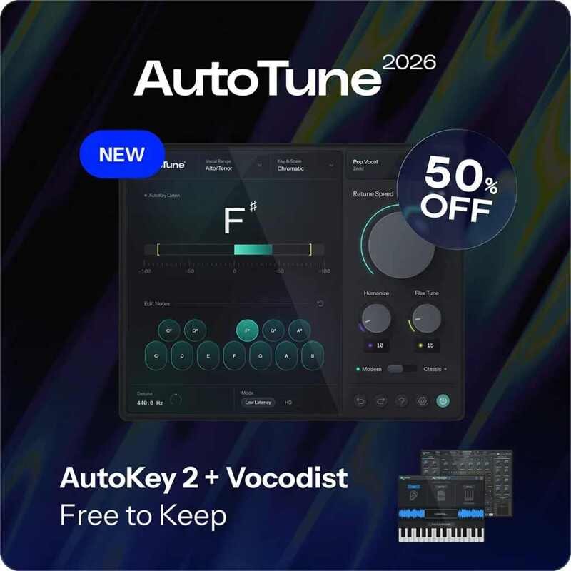 Auto-Tune 2026 tarjoaa aidon Auto-Tune-soundin entistä nopeammassa ja helppokäyttöisemmässä paketissa. Vaihda Low Latency -tilan ja HQ-miksauksen välillä, käytä intuitiivisia säätimiä ja visuaalista pitch-näyttöä sekä AutoKey 2 -tukea. Soveltuu sekä läpinäkyvään intonaatioon että moderniin “hard-tune”-efektiin.