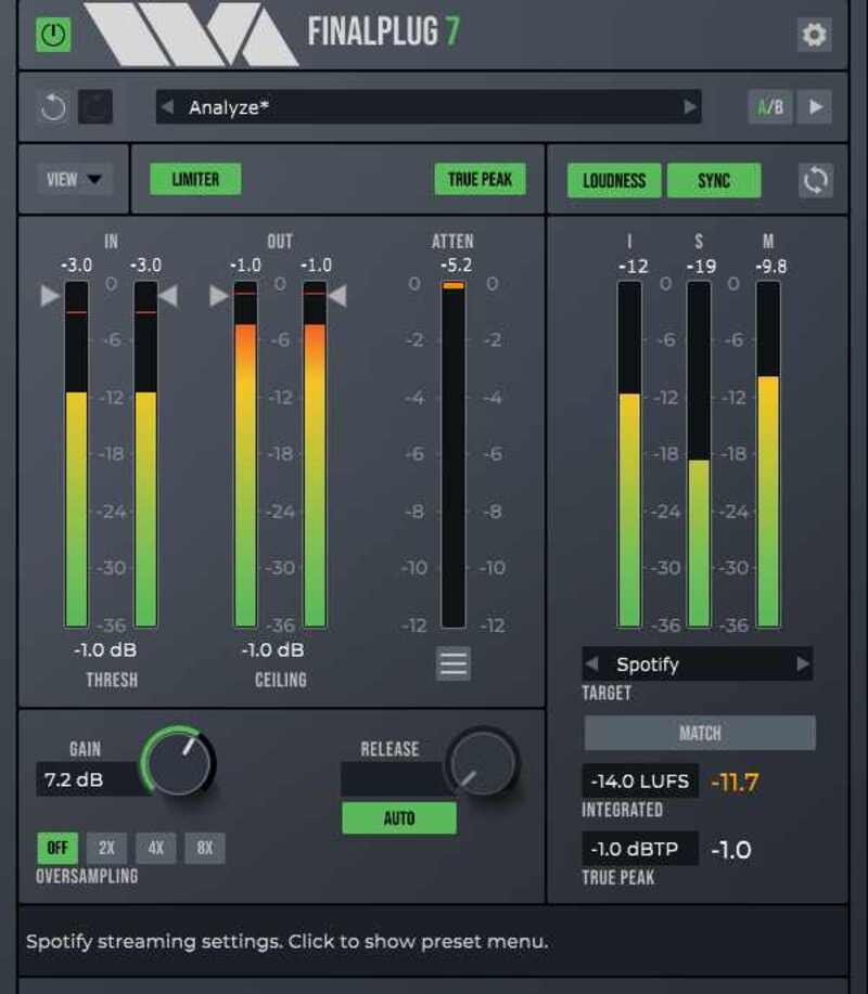 - MATCH button automatically configures the limiter to meet loudness and true peak delivery targets.
