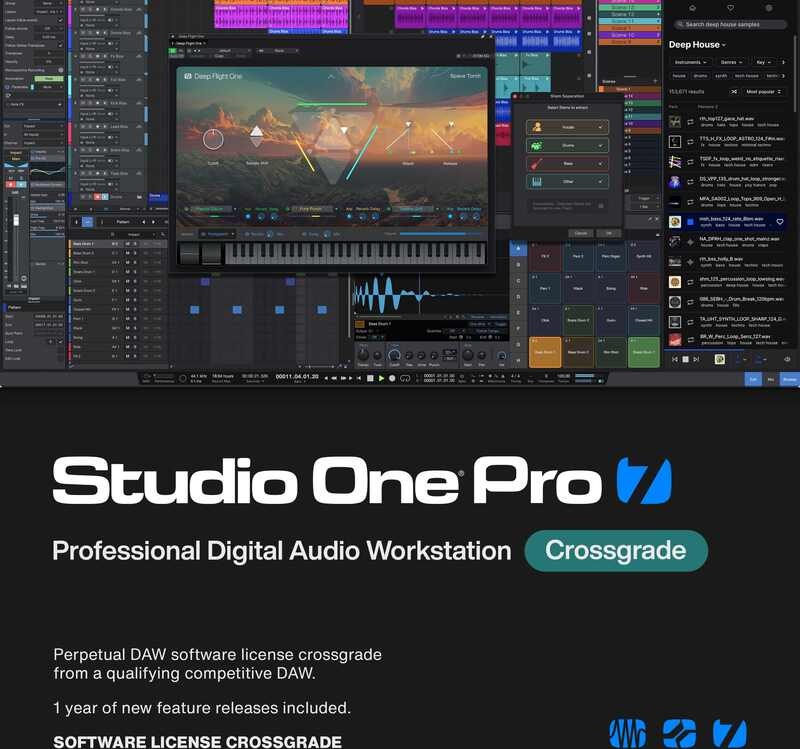 Studio One Pro 7 Crossgrade on erinomainen vaihtoehto sinulle, joka käytät jo toista ammattitason digitaalista äänityöasemaa (DAW) ja haluat siirtyä PreSonusin tehokkaaseen ja joustavaan työympäristöön. Tämä crossgrade-versio sisältää kaikki Studio One Pro 7 -täysversion ominaisuudet, mutta edellyttää voimassa olevaa lisenssiä hyväksytystä DAW-ohjelmistosta.