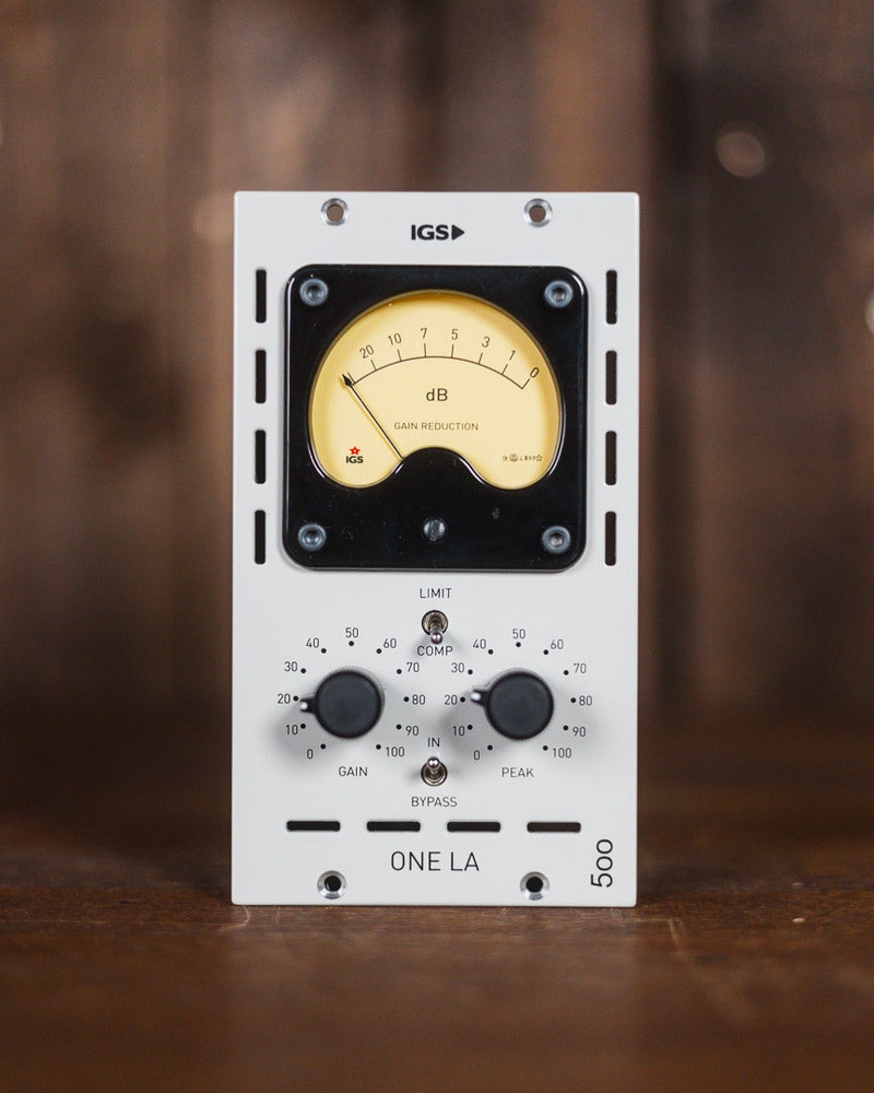 The IGS ONE LA 500 is an opto-compressor built for the 500 series format. This is the first high voltage vacuum tube 500 series module that is offered by IGS. It is powered with 250V DC from an on-board voltage converter, so it can be plugged into any 500 series rack equipped with a standard power supply.