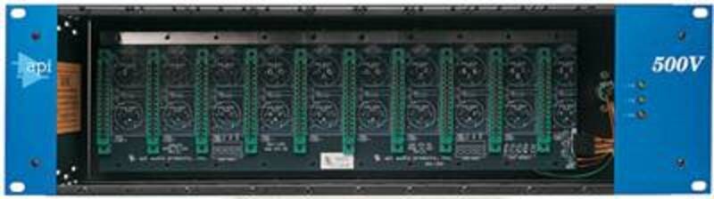 The API Model 500VPR is powered externally by a tri-polar power supply and is designed to accept API standard format 5.25" X 1.5" modules. The 500VPR is internally wired for PIN 2 hot, and comes with the API L200PS. The input/output jacks are both XLRs. The 500VPR can hold up to ten API modules. API makes several modules to fit this rack, including the 550A, 550b, 560, 525, and 512c. Like all API products, the 500VPR rack enjoys API's standard 5 year warranty.