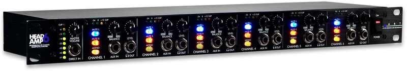 The HeadAmp6 is a fully-featured six -channel stereo headphone amplifier that includes six auxiliary inputs to allow separate “more-me” mixes on each headphone channel.