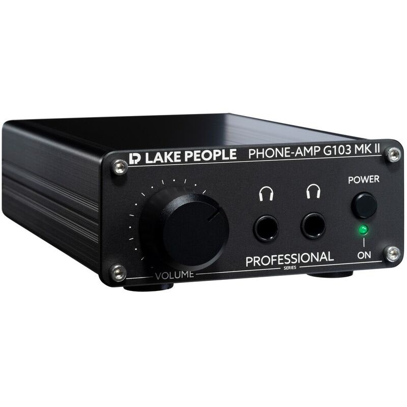 The Lake People G103-P MKII is a desktop-format headphone amplifier designed for professional use in studio and high-fidelity environments. Featuring balanced XLR inputs, adjustable gain, and two parallel headphone outputs, it is tailored for applications requiring precise and clean audio reproduction, regardless of headphone model.