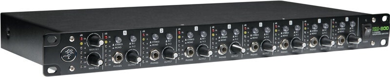 Yhden 19" räkkiunitin kokoinen, lujatekoinen ja selkeä Mackie HM-800 tarjoaa analogisen ja dynamiikaltaan laajan vaihtoehdon eri tilanteisiin. Stereotulot ja pää-stereolähdöt on toteutettu 6,3mm jakeilla, lisäksi laitteessa on mikserien aux-lähdöillä rakennettua monitorointia silmälläpitäen 8 itsenäistä AUX-tuloa, joihin kytkeytyminen katkaisee päätulojen signaalit. Lähtöjä on kaksin kappalein, esimerkiksi useampien kuulokevahvistinten ketjuttamiseen.