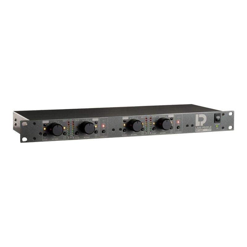 The Lake People MIC-AMP F311 Q is a four-channel microphone preamplifier designed for studio and live sound applications. It offers transparent gain with low noise and high detail reproduction when recording vocals, instruments, or ambient sound.