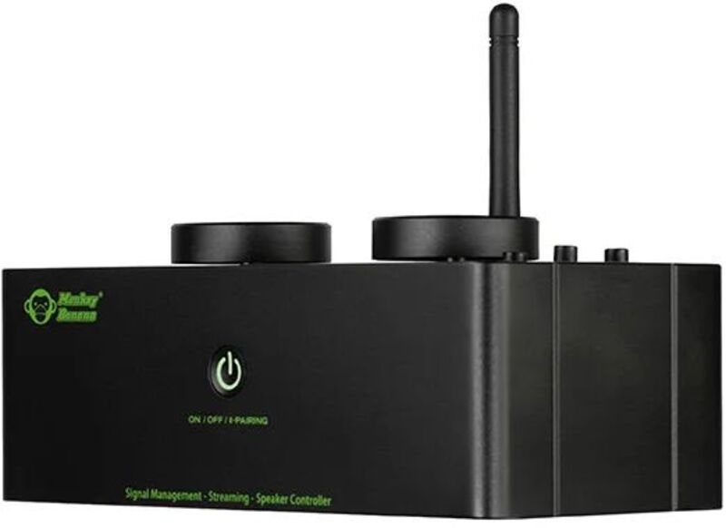 The Monkey Banana Zookeeper allows wireless or wired audio transmission between transmitter and Zookeeper. The streaming controller is suitable for living room hifi setups, gaming, music production, presentations and much more.... The Bluetooth transmission is in the 2.4GHz band. Included are the Zookeeper, a USB-C cable, RCA cable 2m, anti-slip feet.