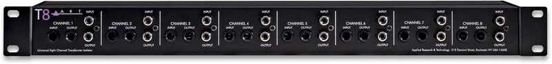 The T8™ (Transformer Eight) a high quality totally passive audio interface that uses 8 transformers to separate input and output signal grounds, thereby isolating two systems and reducing hum and ground-loop noise.