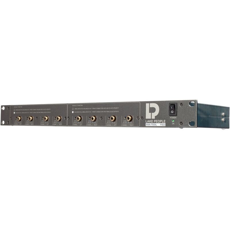 The Lake People F822 is an 8-channel analog line converter designed to adapt signal levels between professional studio equipment (+6 dBu) and consumer audio devices (–10 dBV). With high precision and minimal distortion, it is suitable for mastering, broadcasting, and live sound applications where different standards need to be integrated.