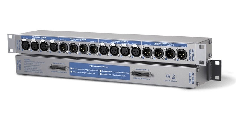 Sisältää kaksi lohkoa D-sub – (4 x XLR uros ja 4 x XLR naaras) portteja, jotka korvaavat perinteiset plugi -ja/tai XLR-viuhkaliittimet kiinteässä ja vakaassa räkkiformaatissa. DTOX-32 on pin-yhteensopiva TASCAM (=RME) ja Yamaha formaattien kanssa