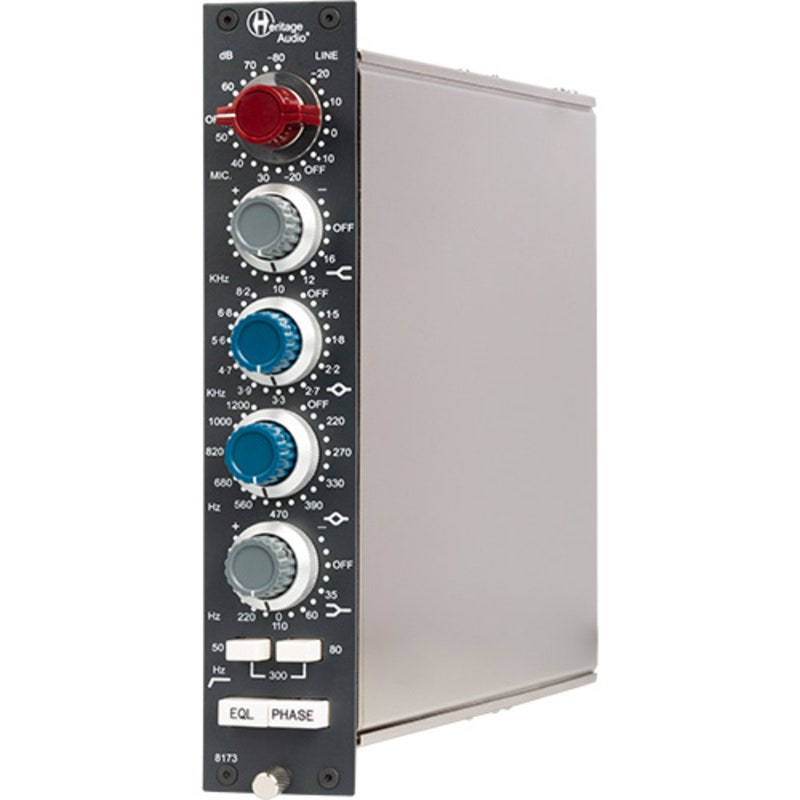 The 8173 is a 73-sized module, adding the 81 mid bands to the 73 classic design, creating an equalizer that is really hard to beat. It features a Baxandall type high shelf band, but with the addition of a high frequency selector switch offering 3 different frequencies instead of the fixed one at 12 kHz. The result is a 4-band tone monster that combines the best features of the vintage modules in an incredibly smart and tasteful way, at a price lower than most current offerings.