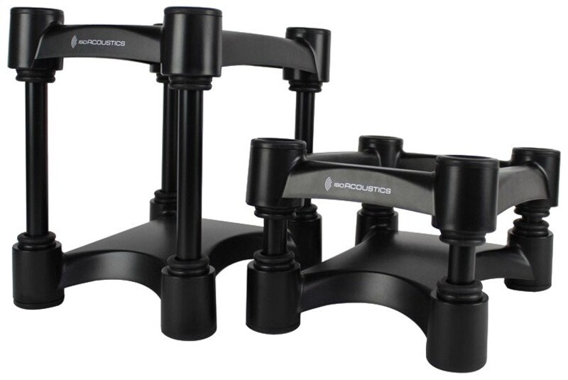 IsoAcoustics ISO-200 on parillinen eristysjalusta suurille studiomonitorikaiuttimille – säädettävä korkeus ja kallistus, kantavuus jopa 34 kg, erinomainen akustinen eristys ja stereokuvan tarkkuus.