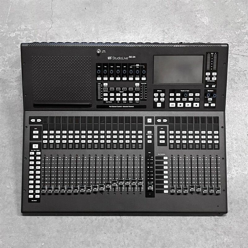 The StudioLive SE 24 is a 40-channel digital mixer in a 25-fader chassis with full analog I/O. Featuring 32 recallable XMAX-R preamps plus vintage-style EQ and compression on every channel and bus, it delivers studio-grade performance at your fingertips.