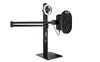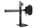 Kaikki tarvittavat säätimet löytyvät telineen jalustasta. LED-valon himmennin, on/off kytkin (mikrofonitelineen vasemmassa äärilaidassa), kuulokeliitäntä, kuulokkeiden äänenvoimakkuus, mikrofonin gain-säätö, mikrofonin mykistys ja kameran on/off-kykin.