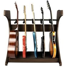 This floor stand is designed to store up to six ukuleles in an upright position, making it suitable for environments where multiple instruments need to be kept organized and easily accessible. The construction features separate slots for each ukulele, reducing the risk of contact between instruments and contributing to orderly and secure storage.