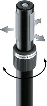 Ekstralyhyt teräksinen jalustaputki, jolla yhdistät subwooferin ja satelliittikaiuttimet. Jalustaputken pohjassa on M20-kierre, joka yhdistyy esim. 24116-kiinnityslevyn naaraskierteeseen. Jämäkkä putkirakenne pitää kaiuttimet täysin pystysuorassa asennossa. Laajenevat muovikiilat varmistavat, että satelliittikaiuttimet eivät tärise jalustaputken päässä. Kaiuttimen kiinnittäminen on helppoa ja tapahtuu kätevän rengaslukon avulla, joka asetetaan paikoilleen ja kierretään kiinni.