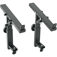 Tukivarret voidaan säätää erikokoisille kosketinsoittimille sopiviksi ja saat lisättyä telineeseen lisätasoja useammille kosketinsoittimille tai vaikkapa kannettavalle tietokoneelle.