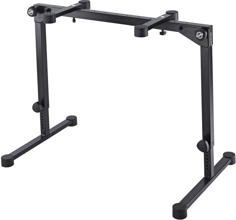 Tukivarret voidaan säätää erikokoisille kosketinsoittimille sopiviksi ja saat lisättyä telineeseen lisätasoja useammille kosketinsoittimille tai vaikkapa kannettavalle tietokoneelle.
