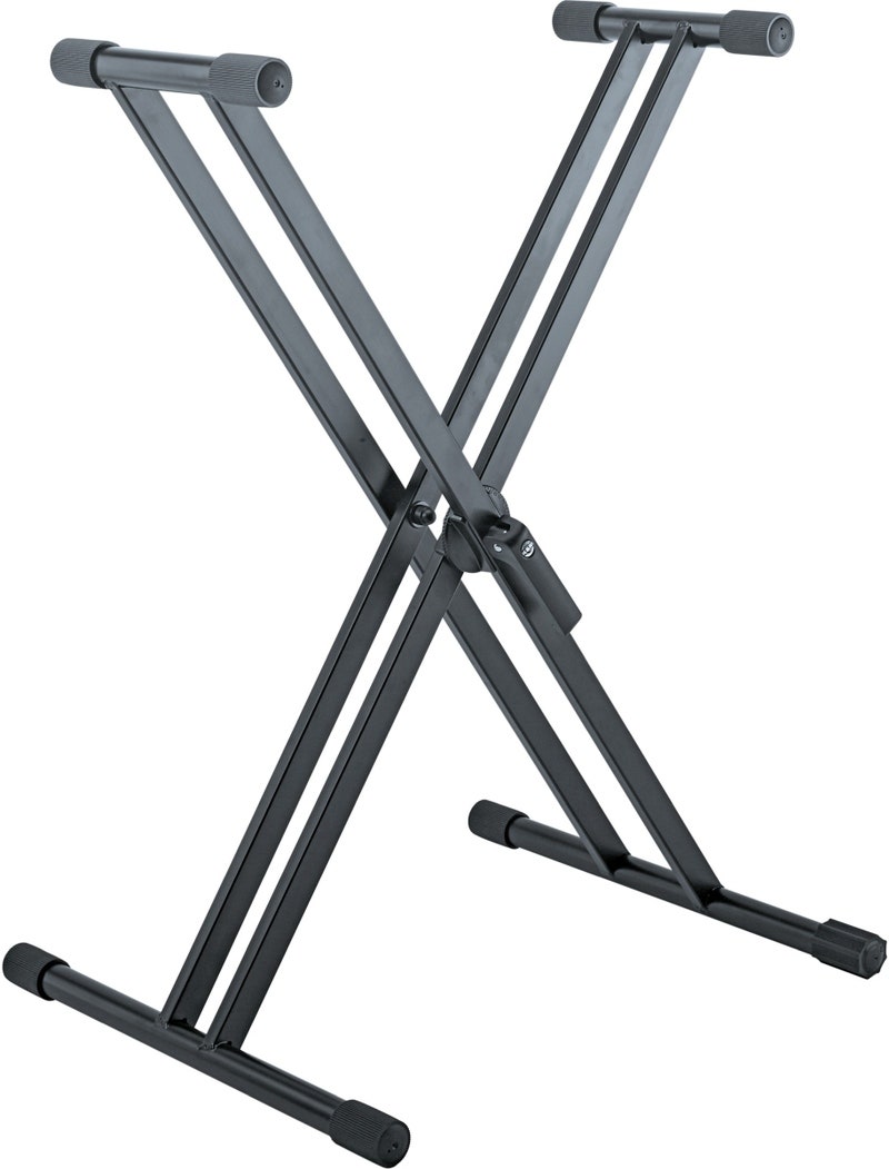 Tuotenumero 105342218993 on tukeva, mutta hieman kapeampi kosketinsoitinteline kaksoisjaloilla. Soveltuu mainiosti keikkapianoille