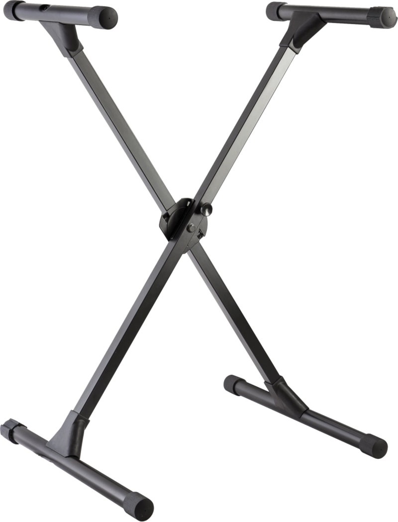 Edullinen, mutta tukeva X-teline kosketinsoittimille. Neljäportaisen korkeudensäätömekanismin avulla löydät oikean soittokorkeuden helposti ja nopeasti. Säädettävä kumiset putkien päädyt mukautuvat tukevasti epätasaisille alustoille.
