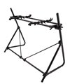 Two polymer keyboard holders with excellent retention strength are included. By adjusting the position of the holders, you can accommodate a variety of keyboard shapes and sizes. To hold a small synthesizer, controller or performance instrument, you can narrow the spacing between the two holders for a compact layout. For a two-level setup, you can adjust the lower holder toward yourself and the upper holder away from yourself so that the upper and lower instruments do not overlap, ensuring that each will be in a convenient playing position. During transport, or when not in use, the holders can fit between the two pipes of the tier for compact storage.