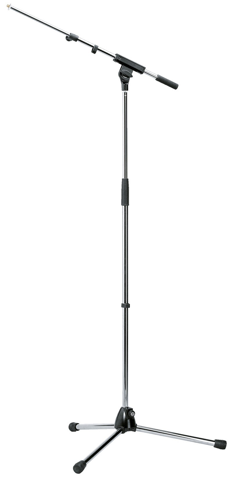 Tuotenumero 1075536Kromin värinen puomillinen mikrofoniteline, jossa taitettavat jalat ja kaksiosainen teleskooppipuomi