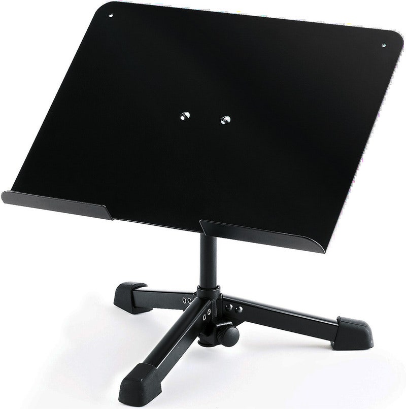 Kokoontaitettava kolmejalkainen pöytäjalusta kannettaville tietokoneille ja multimedialaitteille. Soveltuu hyvin myös luentomuistiinpanoille ja nuoteille jne. Portaattomasti kallistuva taso kiinnittyy yksinkertaisesti prismaliittimellä jalustaan.
