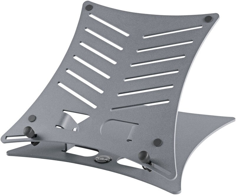 Todella tyylikäs kannettavan tietokoneen teline harmaalla pulverimaalauksella. Kätevän hammasnivelen ansiosta telineen kallistusta voidaan säätää, mikä tarjoaa maksimaalisen käyttömukavuuden. Kokoontaitettuna teline on litteä ja lisävarusteena saatavan kantolaukun (12199) kanssa se sopii täydellisesti liikkuvan DJ:n ja muusikon laitearsenaaliin. Yksittäin säädettävät lukitustapit mahdollistavat kaikkien yleisten kannettavien tietokoneiden, mikserien, CD-soittimien jne. turvallisenkäytön.