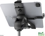 Tuotenumero 1071845Mikrofonitelineeseen kiinnitettävä pidike tablettitietokoneille. Valmistettu ympäristöystävällisestä biohajoavasta muovista