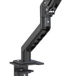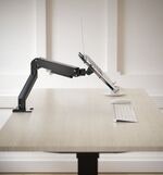 Räätälöity ratkaisu työpisteeseellesi: tämä pöytäkiinnitteinen teline mahdollistaa kannettavan tietokoneesi sijoittamisen tilaa säästävällä ja ergonomisella tavalla. Vankka rakenne integroidulla pneumaattisella jousella kestää jopa 9 kg kuorman. Tukeva kiinnitysmekanismi (enintään 60mm leveä) mahdollistaa telineen vankan kiinnityksen työpöytääsi. Telineen tietokonetasoa voidaan kallistaa, kiertää ja kääntää portaattomasti täydellisen katselukulman ja niskaystävällisen työskentelyasennon saavuttamiseksi. Lisäksi koko telineen varsi voidaan kääntää 360°. Integroitu kaapelikanava pitää työpisteesi siistinä.