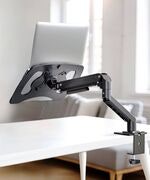 Tuotenumero 1096365Ergonominen kannettavan tietokoneen pidike pneumaattisella korkeussäädöllä, 360° kääntösäteellä ja tukevalla kiinnitysmekanismilla