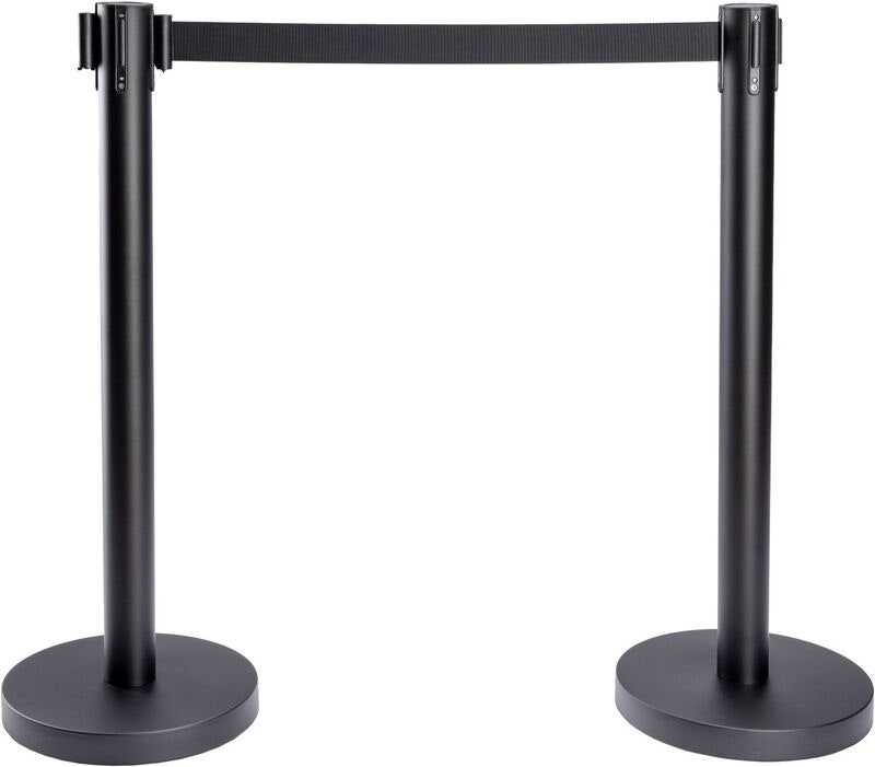 Tyylikäs rajauspylvässetti ulosvedettävällä nauhalla. Nämä kaksi nauhalla varustettua rajauspylvästä voidaan liittää toisiinsa ja voit täten rajata haluamasi alueen tyylikkäästi tai käyttää pylväitä kulunohjaukseen.