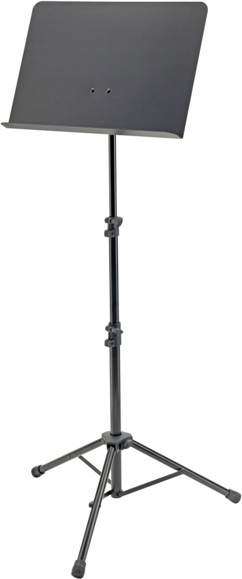 Tukeva orkesterinuottiteline, jonka jalustaosa on alumiinia ja nuottitaso on terästä. Telineen kiristysliitokset on valmistettu kestävästä muovista ja kestävät kovempaakin kulutusta. Nuottitaso voidaan irrottaa ja kiinnittää helposti käyttäjäystävällisellä pikakiinnitysmekanismilla. Ergonominen siipimutteri helpottaa nuottitason kulman säätämistä. Nuottitaso voidaan säätää portaattomasti puristusholkin avulla, joka suojaa telineen pintaa.