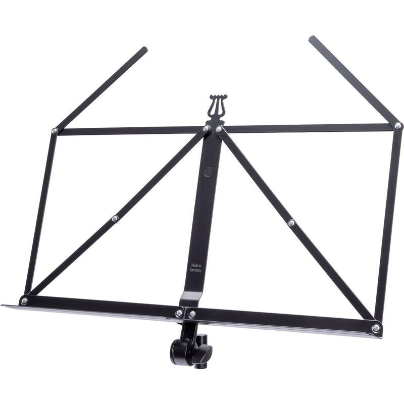 Kokoontaitettava nuottitaso, joka perustuu K&M:n suosittuun10065-malliin. Vankka nuottitaso on varustettu myös integroidulla 3/8" kierteellä, joten se voidaan kiinnittää mihin tahansa yksittäiseen mikrofonitelineeseen. Teräksisen nuottitason mitat ovat 485mm x 240mm x 42mm.