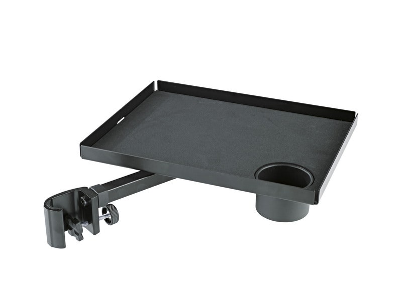 Käytännöllinen 250mm x 330mm lisätaso, jonka voit kiinnittää maks. 30mm paksuihin jalustaputkiin. Voit kuljettaa kaapelit siististi ja huomaamattomasti tasossa olevien aukkojen kautta. Tasossa on myös kätevä mukipidike. Solukumi pehmuste estää ylimääräiset värinä-äänet ja pitää laitteidesi pinnan kolhuttomana. Tason etäisyys ja suuntaus on säädettävissä tarpeesi mukaan.