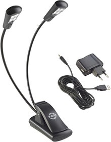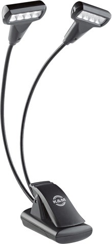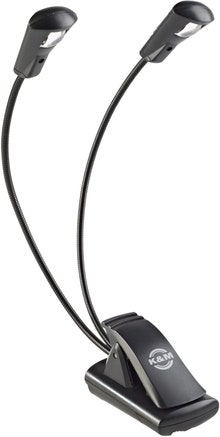12246 on tehokas ja monipuolinen nuottitelinevalaisin, jossa kahden joutsenkaulan päässä on neljän ledin lamput. Kummassakin lampussa on omat kytkimensä tehon säätöä varten. Taipuisa varsi mahdollistaa valaisimen valokeilan säätämisen ja leveä leukakiinnike (jopa 25 mm) kiinnittyy tukevasti nuottitelineisiin, pöytälevyihin jne. Myyntipakkauksessa on mukana kolme paristoa (1,5 V AAA), joiden käyttöaika on jopa 10 tuntia. Voidaan käyttää myös 5W verkkovirtalähteellä (ei mukana myyntipakkauksessa)